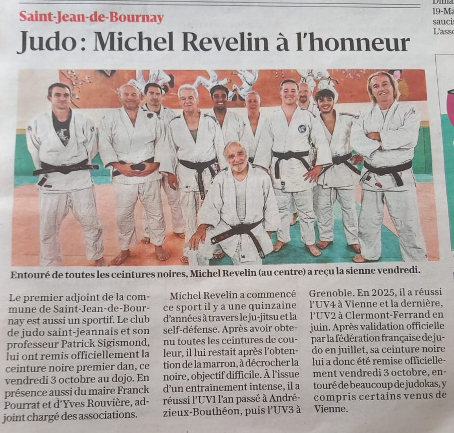 Remise d'une nouvelle ceinture noire, Michel Revelin a été récompensé de son investissement et son travail avec l'obtention de sa ceinture noire.